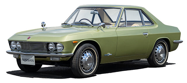 1964年(昭和39年)の東京モーターショーで発表され、翌1965年4月に発売されたのが初代シルビア(CSP311型)です。車名はギリシャ神話の美しい女神「シルビア」に由来し、その名にふさわしい流麗なエクステリアが特徴でした。 初代シルビアは、フェアレディ 1600(SP311型)のR型エンジンとシャシーをベースに、継ぎ目の少ないボディや豪華な革のインテリアなどをセミ・ハンドメイドで仕上げたため、1965年(昭和40年)3月から1968年(昭和43年)6月までの約3年間に550台あまりが生産されたにとどまりました。当時の価格はセドリックを超える120万円と、若者の憧れる高嶺の花というべき存在でしたが、日本の2ドアスペシャリティクーペの草分けとして、また、第三京浜国道のパトカーに採用されたことでも、大きな注目を集めたモデルでした。このクルマはテーマカラーのシャンパンゴールド仕様です。